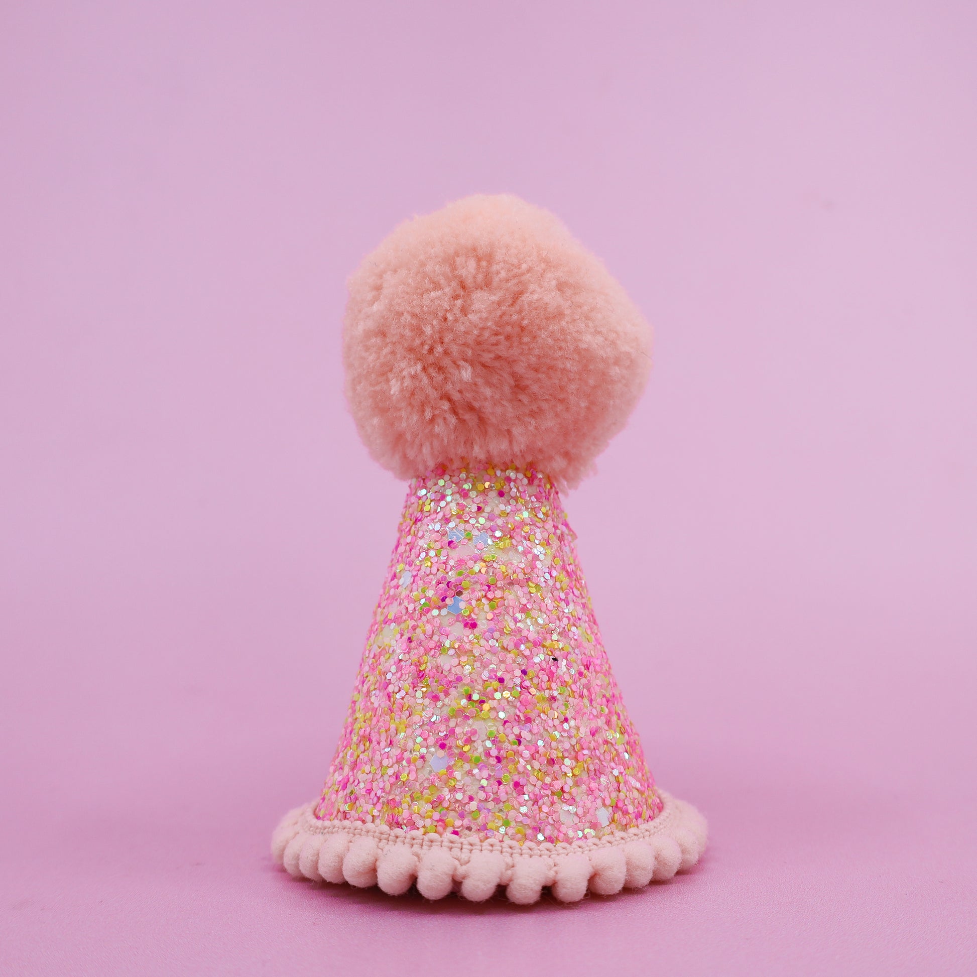 Pawty Hat: Baby Pink Speckle & Peach Pom Pom
